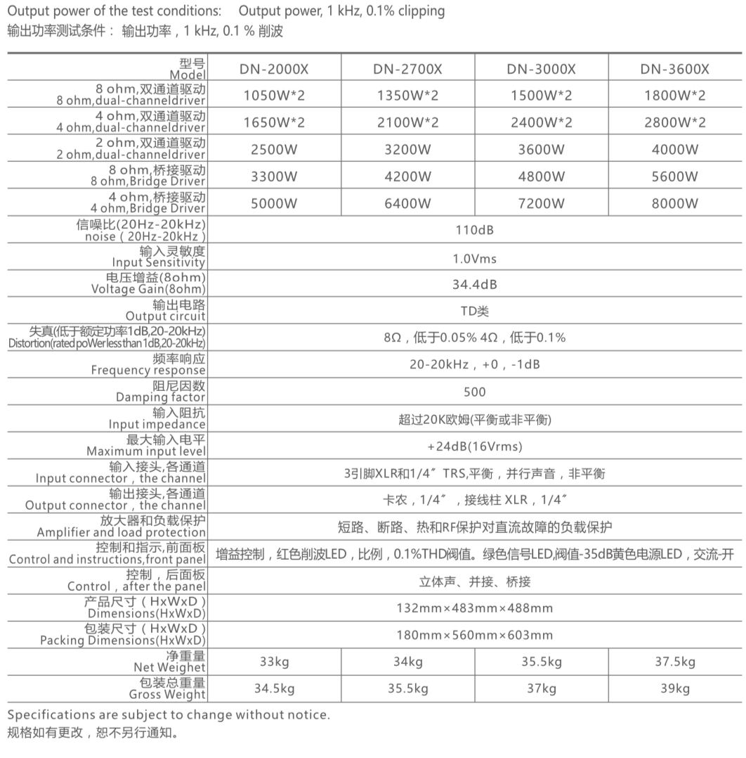– Series Agasound DN thực sự là sản phẩm tiên phong, dẫn đầu cho thị trường đẩy công suất cao cấp trên thị trường hiện nay. Dòng sản phẩm DN bao gồm 4 mã: DN-2000X, DN-2700X,DN-3000X và DN-3600X.