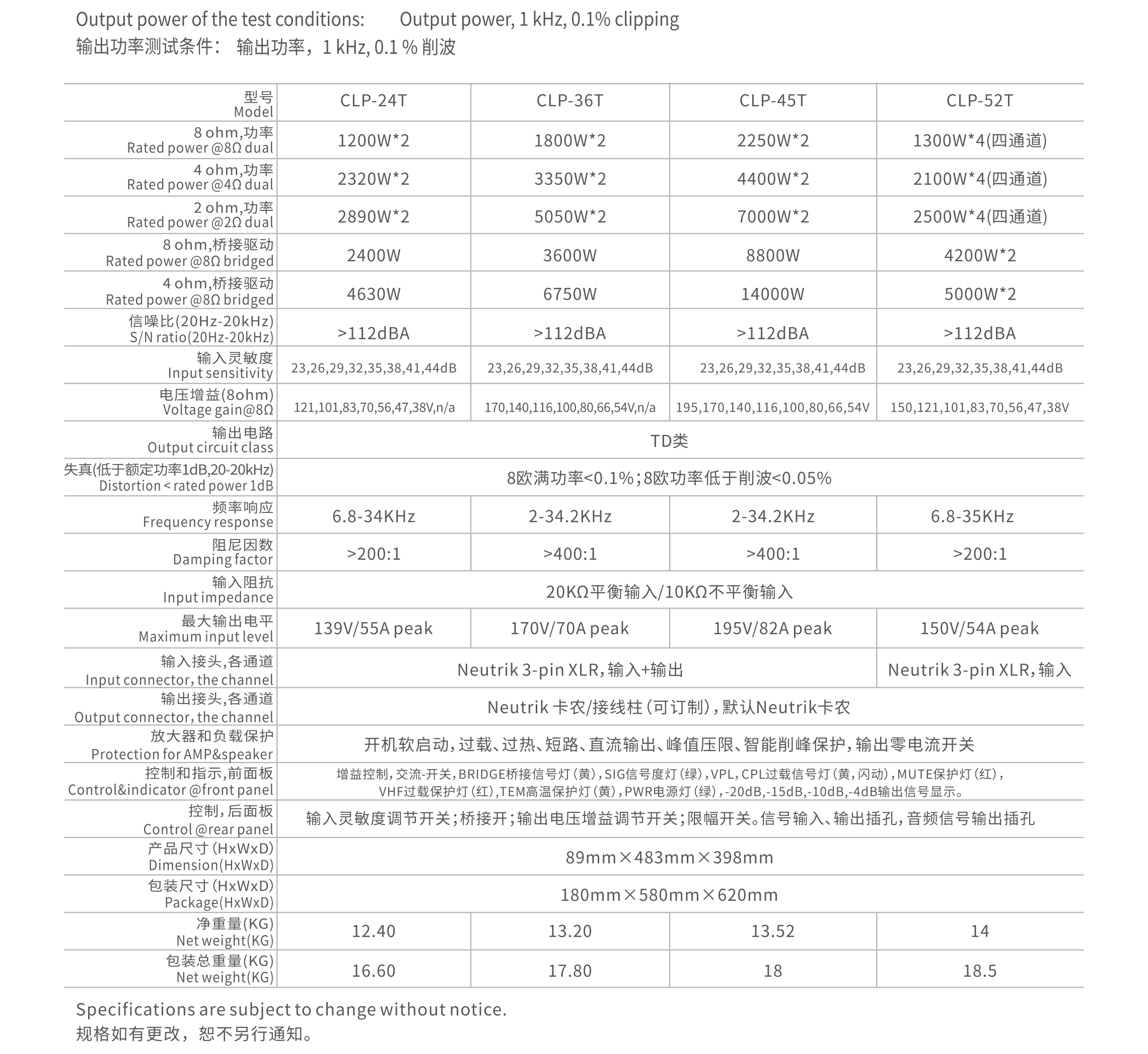– Dòng Công suất CLP áp dụng công nghệ tiên tiến của Châu Âu, bộ nguồn chuyển đổi chỉnh lưu R.SMPS và tầng đầu ra TD được kết hợp,tạo nên chất lượng âm thanh đầy đủ và tinh khiết,ngoài ra nó được làm từ các linh kiện chất lượng cao của các thương hiệu nổi tiếng trên thế giới để đạt được hiệu suất công việc lên tới 90%.Tiết kiệm điện và toả nhiệt thấp,với chất lượng âm thanh của bộ khuếch đại class A và tiết kiệm điện năng;cung cấp điện chuyển mạch được điều chỉnh ,để đảm bảo rằng công suất đầu ra cố thể được giữ cố định khi nguồn được đặt trong môi trường AC 190-260V và sẽ không bị giảm do sụt áp.Hiệu quả của bộ tản nhiệt bằng đồng với thiết kế ống dẫn khí tản nhiệt và dẫn nhiệt khoảng cách ngắn mang lại hiệu quả tốt hơn .