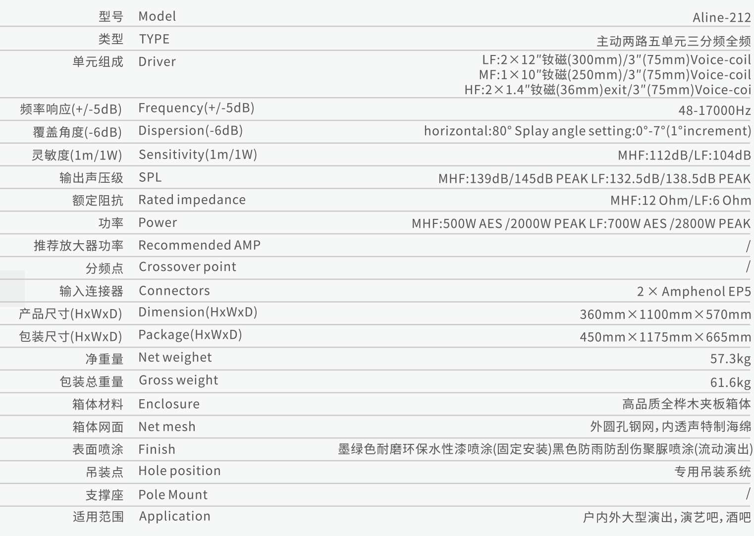 -Với tiêu chuẩn cao cấp ,Các linh kiện của Dòng Aline được các nhóm kỹ sư hàng đầu thế giới sàng lọc nghiêm ngặt từ các thành phần đơn lẻ và các thành phần hỗ trợ nhỏ nhất , đồng thời kết hợp với công nghệ cắm pha ống dẫn sóng chính xác ,vỏ thùng được thiết kế đặc biệt ba hệ thống treo kiểu điểm giúp việc lắp đặt trở nên dễ dàng ,các bộ phận kết nối bằng thép không gỉ độ bền cao ,hệ thống nâng đơn giản , lực đồng đều ….